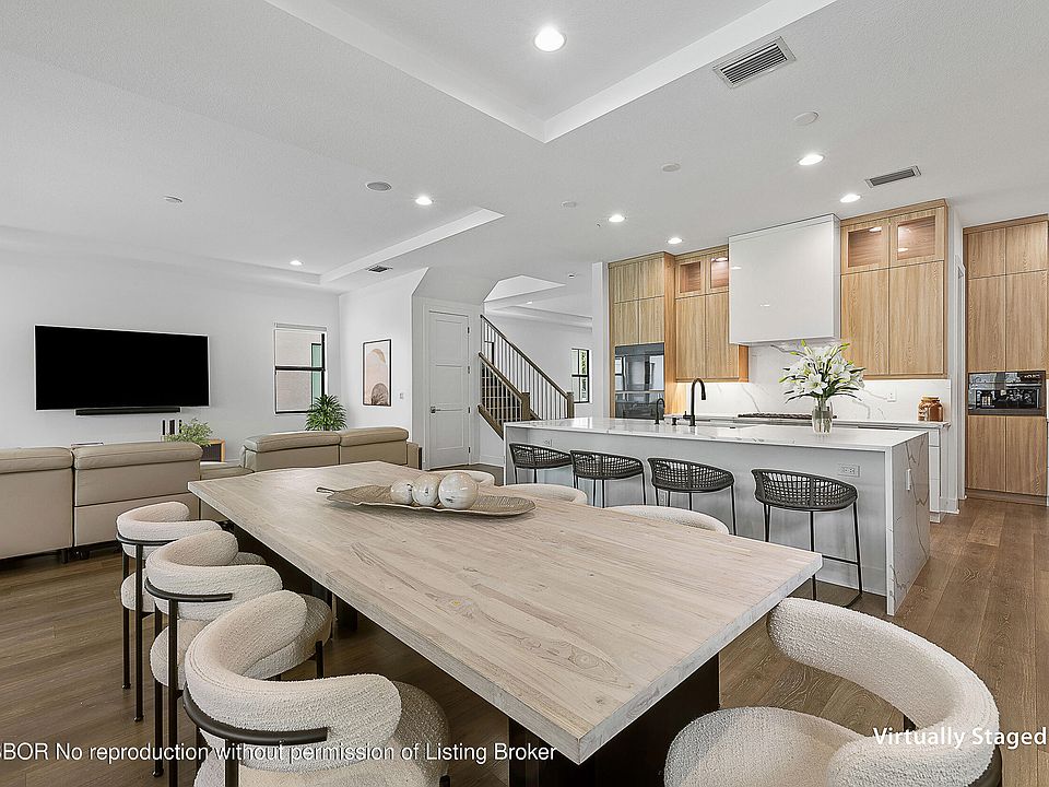 Modern sophistication meets effortless indoor-outdoor living. Vaulted ceilings & oversized windows with plenty of natural light. Custom kitchen with wood-paneled cabinetry & bar, large island, & Miele appliances including gas cooktop, double ovens, built-in coffee station & hidden fridge/freezer. The covered lanai, summer kitchen, pool/spa & sun shelf create a true outdoor oasis. Upstairs has 4 bedrooms & a loft, including a primary suite with 2 custom closets & a spa-style bath. All guest rooms are ensuite with custom closets. A glass-enclosed office completes the main level. Located on the largest lot for this model with space to add a fire pit, putting green & play area.24/7 security, resort-style pool, clubhouse, & fitness area. Moments from A rated schools... (See Supplement) shopping, dining & beaches.