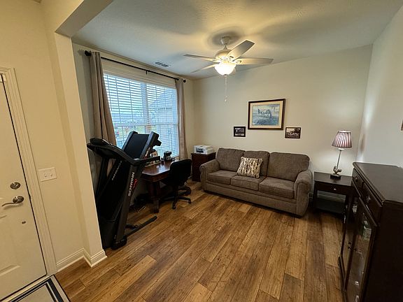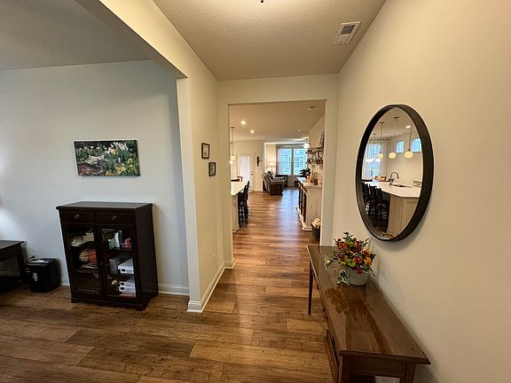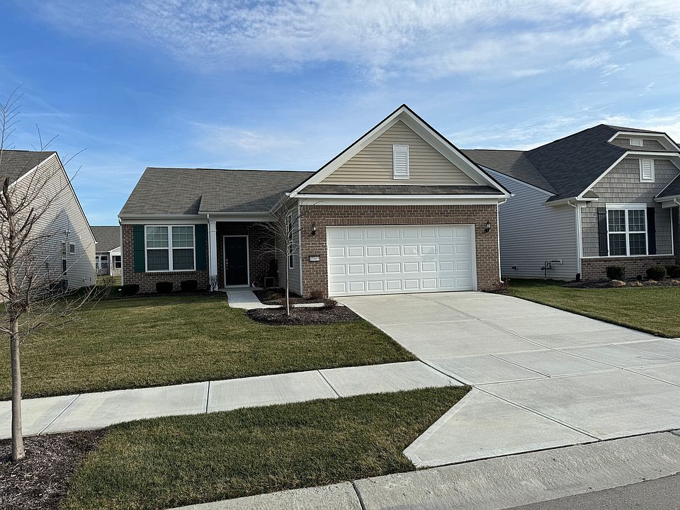 Maintenance free living in this 55 yrs of age or older lifestyle community! This popular Castle Rock model includes 2 bedrooms, 2 full baths, flex room, open-concept living/kitchen/dining, and upgrades throughout. Upgrades include smart home options, beautiful laminated hardwood throughout, upgraded gourmet kitchen with white cabinets, soft close drawers/doors, quartz countertops, stainless steel appliances, and built-in oven/microwave. The master bedroom/suite includes large walk-in shower, dual sinks with quartz countertop, and large walk-in closet. Extended finished garage offers lots of storage, shelves, and epoxy flooring. The back patio is ideal for relaxing and entertaining. Enjoy watching a game and grilling out with gas grill hookup and wired tv mount. This home is a must see!