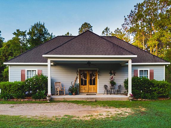 Sitting on 3.4 acres, surrounded by beautiful pine trees, you'll find this great custom home. Large custom front doors greet you as you walk in. With a very open floor plan this home is perfect for that newly wed couple or a couple looking to retire in the country, to entertain guests and create memories. The kitchen features custom cabinets and a sit down bar. The master bath features a large jacuzzi tub and a separate his and hers sink. With a walk in closet, your master room feels more like a suite. Step through the back doors, and you'll find a beautiful and quite custom porch to drink your coffee on. With a fire pit that's ready to roast s'mores, you're guaranteed to make great memories. With a large shed to fit all your outdoor equipment, this home has all the amenities that one need