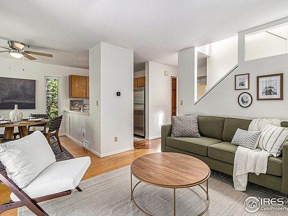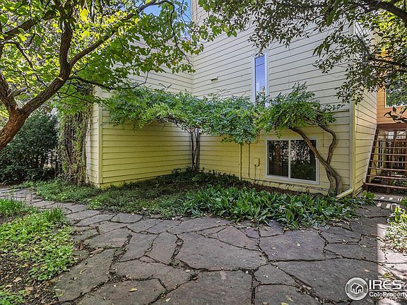 A hidden gem in the heart of Old North Boulder with NO HOA dues! This charming end-unit townhome is tucked away in a private setting, yet only steps away from Ideal Broadway Shops and restaurants and a short walk to Pearl Street Mall. The interior features brand new windows, carpet, and paint. New HVAC and water heater in the last 3 years. Bamboo floors in the living and dining rooms with fantastic natural light throughout. The primary suite on the second story features a private balcony, mountain views, and a full bathroom with tub. Cozy up by the wood burning fireplace in the living room. A second balcony from the main level provides access to the garden down a stair set. Relax in the shade or entertain guests in your private, well established garden, with a variety of water-wise, lush perennials. The mature, low maintenance garden is equipped with an irrigation system which attaches to a spigot. 2-car, attached garage with additional parking in the driveway. This is a rare opportunity to own an end unit in a unique building, positioned in a fantastic location with no HOA dues.