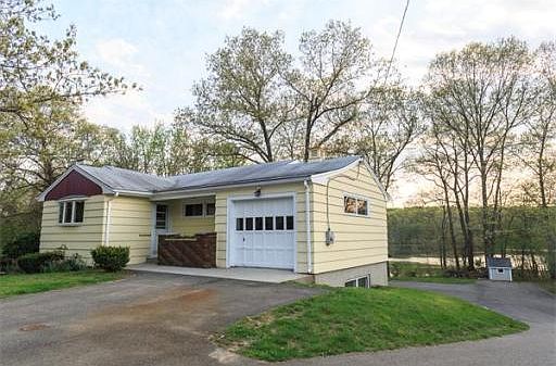 Motivated Seller!! Welcome to this delightfully unique ranch style home overlooking a private pond. Scenic sunsets are breathtaking. Beaming hardwood floors, central air conditioning, updated electric, two garages, upper and lower level, two fireplaces, a walk out basement, and 4 year old septic system. In law potential. Approximately 1000 sq ft. of living lower level not included in the GLA. Selling "as is"