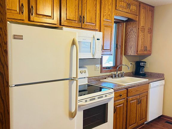 Beautiful zero entry, end-unit townhome with public open space and a pond in the back. This highly desirable area is only blocks away from the YMCA, Hospital, walking paths and the Mississippi River Greenway. The bright sunroom leads to a covered patio and views of nature and green space. This well maintained, original owner townhome features a spacious living room with vaulted ceilings and a gas burning fireplace. The kitchen offers plenty of cabinets and a bay window breakfast nook. Both nice sized bedrooms are separated providing space between the primary and guest bedrooms. Roof was replaced in 2021 and the siding was re-painted in 2022. Most of the interior was recently painted and the carpets were just cleaned.