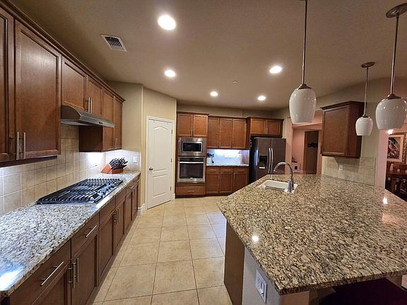Step into modern elegance in this stunning single-story home located in the highly desirable Diamond Crest community. Designed for entertaining, the open-concept layout features 3 spacious bedrooms, 2.5 bathrooms, and a versatile office that can easily serve as a 4th bedroom. Pride of ownership shines throughout with high-end finishes and thoughtful design.Enjoy energy efficiency with fully paid-off solar panels (installed in 2020) by the close of Escrow. The chef's kitchen is a showstoppergranite countertops, stainless steel appliances, gas range, and a walk-in pantry.The luxurious primary suite offers a spa-like retreat with a soaking tub, dual vanities, and a generous walk-in closet.Step outside to a beautifully landscaped backyard with an extended covered patio ideal for relaxing or hosting guests. This home offers the perfect blend of comfort, style, and sustainability.