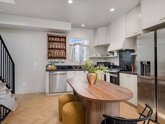 Step inside boutique vibe unit , oversized windows, and a seamless flow from living to dining to kitchen,perfect for entertaining or a stylish live/work setup. The modern kitchen features sleek cabinetry, stone counters, and new stainless-steel appliances, with a guest powder room (1/2 bath) on the main floor.