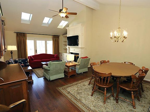 Beautiful condo in a beautiful setting. This one level condo has 3 bedrooms and 2 full baths. Huge master bedroom with fully equipped master bath and nice size walk-in closet with shelving and drawers. There is a peaceful view from each bedroom window to the lovely wooded setting with a stream and a Lake across the street. The welcoming great room has cathedral ceilings with fireplace, built in bookcase and skylights and also opens up to a back patio with a beautiful view. Beautiful hardwood floors and brand new carpeting in bedrooms. Kitchen has been recently updated with granite counter tops, a large island and gorgeous cabinets. Make an appointment today--it won't last long!