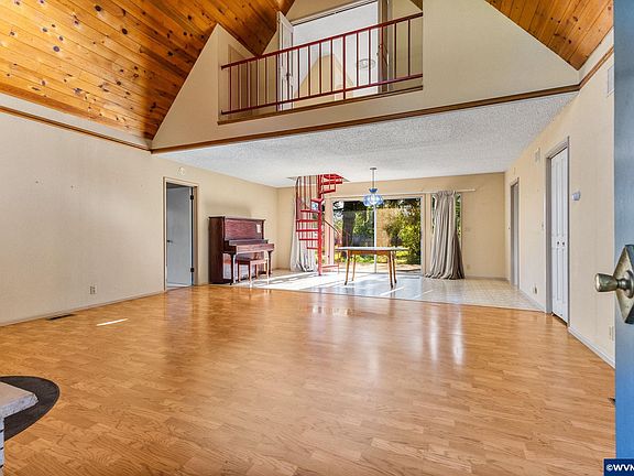 This home is quite remarkable with so many extras. Huge garage with storage and canning room. 2 man doors to outside, huge laundry room with counters and storage, cute kitchen with view of backyard, wrap around deck, the yard of your dream with garden area, water to back, fenced, landscaped and so much more. The home is open and spacious with spiral staircase to 3 bedroom loft. Pellet stove fireplace, huge primary with room for office and walk in shower. The area is awesome next to park and dead end.