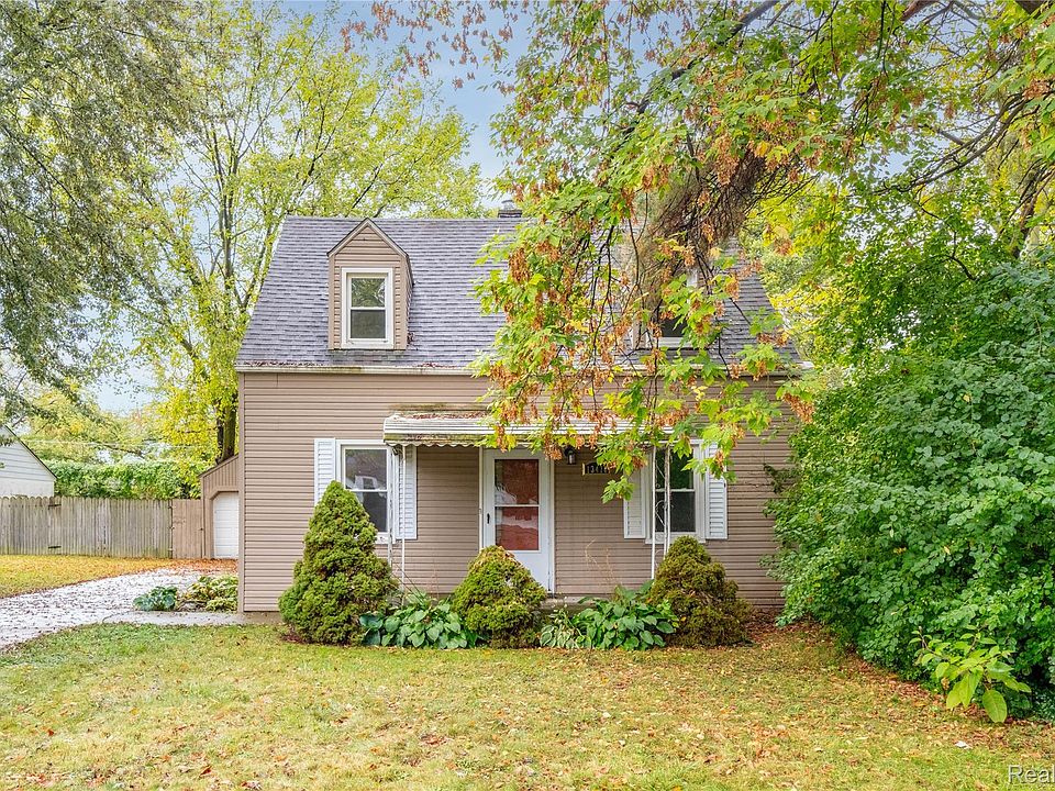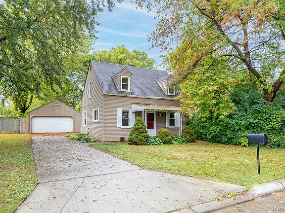 Charming 2-bedroom, 1.1-bath home with nearly 1,100 SF of living space. The main floor features a good-sized living room that flows into the kitchen, along with a convenient half bath. Upstairs offers two comfortable bedrooms and a full bathroom. Outside, enjoy the benefits of a large oversized detached garage—perfect for vehicles, storage, or a workshop. Nestled on a quiet dead-end street, yet just minutes from Meijer, shopping, and easy access to I-696. Updates include: Furnace 2014, Roof 2013, Sewer Line 2014, Driveway 2014, Upstairs Bathroom 2013, Title Floor 2013, HWT 2013, Garage Door 2013, Kitchen Refrigerator 2023.