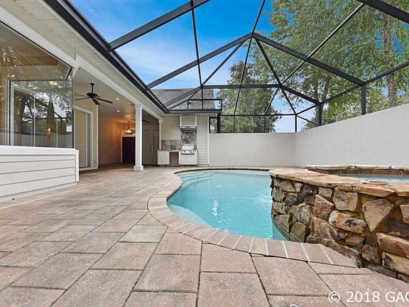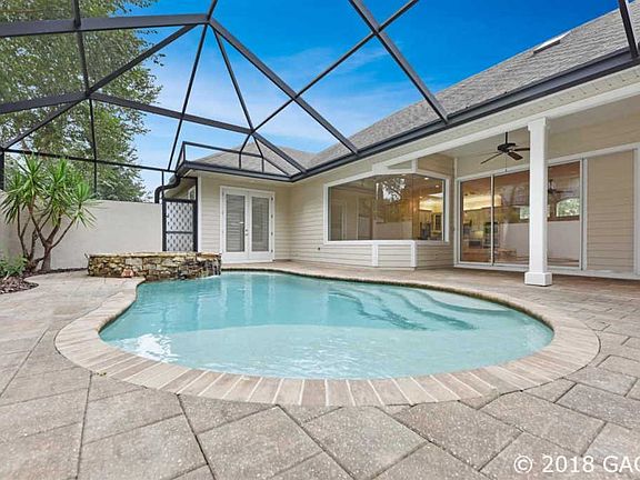 This fantastic 4-bedroom/3.5 bath pool home offers a lovely and completely unique floorplan that will blow your mind! The front door leads directly into the screened pool and patio and features a lovely summer kitchenette. To one side of the âpool entrance,â youâll find a private guest suite with a full bathroom. The main house sits opposite the guest quarters and features an open-plan living/dining area and the kitchen. Natural light streams in from the 90-degree double-corner window in the dining area and the wide sliding glass doors. The main floor features beautiful wood floors. The living room also boasts built-in shelving and storage areas as well as a fireplace. The kitchen features beautiful granite countertops, plenty of cabinet storage, a built-in wine rack, and stainless steel appliances including double ovens. The master suite offers plenty of closet space, a double-sink vanity, a garden tub and separate walk-in shower, and a private entrance into the pool area and backyard. The cavernous bonus room upstairs is perfect for a fourth bedroom or a game room and provides fantastic built-in shelving and storage, plus has its own bathroom. Biking distance to Tioga Town Center!