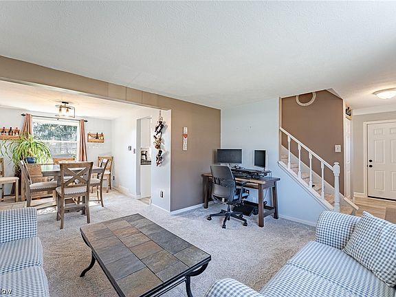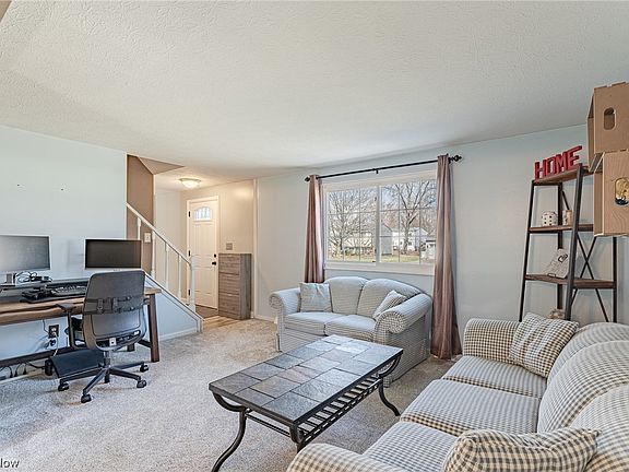 Move right into this delightful colonial on a quiet street in Stow! This welcoming home features over 1700 square feet of living space with 4 bedrooms, 1.5 bathrooms, spacious living areas, updated windows throughout, a remodeled kitchen, and more! The front door enters into a welcoming foyer that flows into the open-plan living and dining rooms. Here you will find fresh carpeting and plenty of natural light. The dining room connects to a fabulous kitchen that includes a full complement of stainless steel appliances, granite countertops, LVP flooring, a lovely tile backsplash, and an eat-in area that is illuminated by a garden window! The kitchen is open to the spacious family room with a sliding door to the back yard. A convenient half bath completes the first floor. Upstairs, there are four generously-sized bedrooms, two with fresh carpeting, and two with LVP flooring. There is an updated full bathroom, plus the primary bedroom has an updated ensuite vanity and dressing area that connects to the full bath. The waterproofed lower level provides a laundry and plenty of storage. Outside, the fully fenced-in back yard features a shed and a concrete patio that flows into a tranquil fire pit area. Convenient location just minutes away from shops and highway access. Don't miss this one!