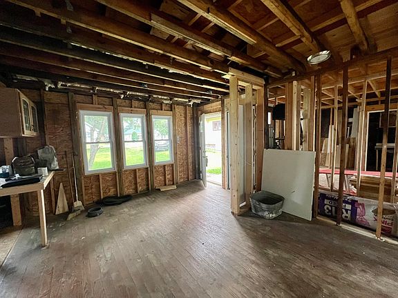 INVESTOR SPECIAL! Set on a nice lot in town. House has been gutted to the studs in advance of remodeling and ready to be fished out with your custom touches. CASH ONLY and sold as is. A new roof, siding windows and doors. Home will need to be connected to public water, sewer, electric and gas for occupancy. Here is your winter project in the making.