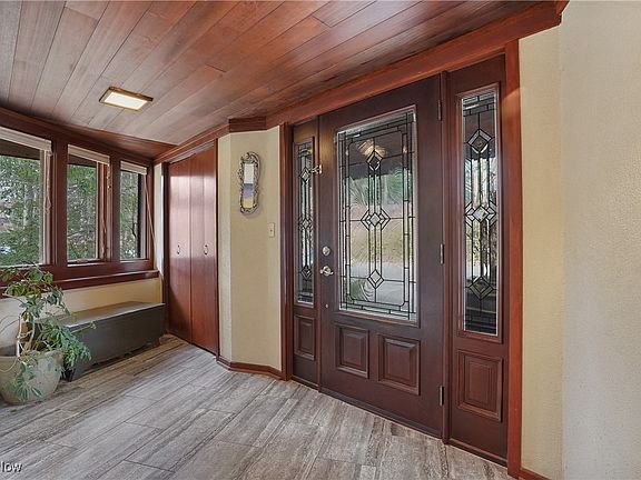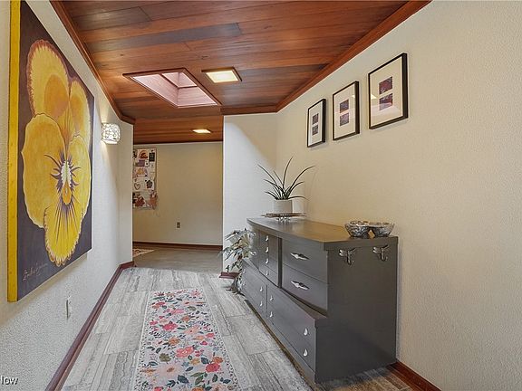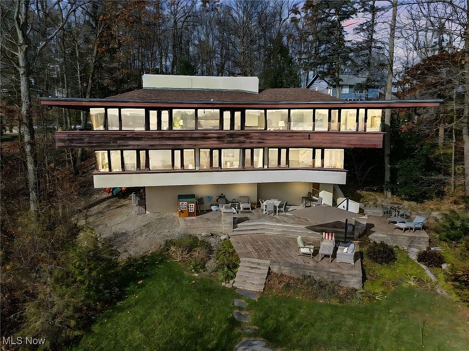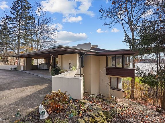 Inspired by Frank Lloyd Wright, this stunning lakefront home is a Mid-Century Modern masterpiece in desirable Twin Lakes. Perched on a hillside overlooking West Twin Lake, it offers dramatic rooflines, wrap-around balconies, and floor-to-ceiling windows that bring the outdoors in. The redesigned chef’s kitchen features rich redwood cabinetry, updated backsplash, Thermador top-of-the line appliances, custom floating shelves, and custom built island with pop-out cabinets and bar seating. The open layout flows into the dining and living areas, where walls of windows capture breathtaking sunrises. Cozy, newly upholstered built-in seating and a gas fireplace create the perfect setting for winter evenings. Thoughtfully curated details include warm redwood accents, built-in cabinetry, integrated lighting, refinished concrete and luxury vinyl tile flooring. This 4–5 bedroom, 2.5-bath home provides flexible spaces for modern living and work. The primary suite wing offers that magnificent view, deck access, walk-in closet and updated bath with walk-in shower & there's a sitting/office area. A lower-level family room adds another comfortable gathering space. The walkout lower level leads to a spectacular three-tier Unilock patio system that cascades down the hillside, offering multiple areas for dining, entertaining, and enjoying panoramic lake views. Launch your kayak from your backyard and enjoy the seamless indoor-outdoor lifestyle this home was designed to deliver. With its overhanging eaves, horizontal lines, and strong connection to nature, this home is a true work of art. Updates include: built-in sofa cushions (2024); updated bathrooms (2023); redesigned kitchen, gas fireplace conversion, refinished concrete floors (2022); custom trim (2021); LVT flooring and hot water tank (2020); new furnace, AC, and front stucco (2018); three-tier Unilock patio and replaced skylights (2016). This property is a rare, one of a kind, iconic property—and not to be missed.