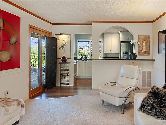 Perched on the edge of a canyon with forever views this Peacock Hills home 55+neighborhood. Newer kitchen with upgraded white shaker style cabinets, granite counter tops, sink, Bosch dishwasher, Induction cook top with convection range and microwave.Beautiful remodeled bath with custom tile, rain shower head and wand plus heated tile floors and new vanity. Murphy bed with storage in back bedroom newer windows and roof.Lush private front yard landscaping with lighting,raised planting beds and fruit trees.