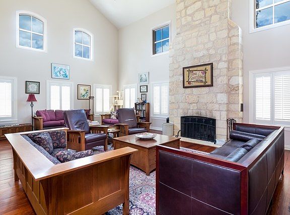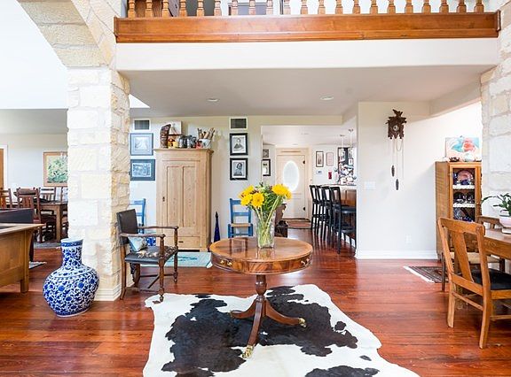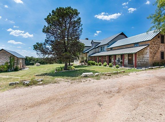 Pristine log, timber & rock main home & Historic BAER BARN B&B on 4.81 acres - a true gem of the Hill Country & a chance to own a piece of Fredericksburg history. Living room features soaring vaulted ceilings, rock fireplace, spacious state-of-the-art kitchen with custom limestone countertops, Wolf cooktop & double ovens, Subzero refrigerator, drawers & wine cooler. Downstairs you will also find a laundry room & full bath, master suite with sitting room & recently updated master bath with dual vanities, tile shower & walk-in bathtub. 4 beds, 2 baths including a 2nd master-suite upstairs.