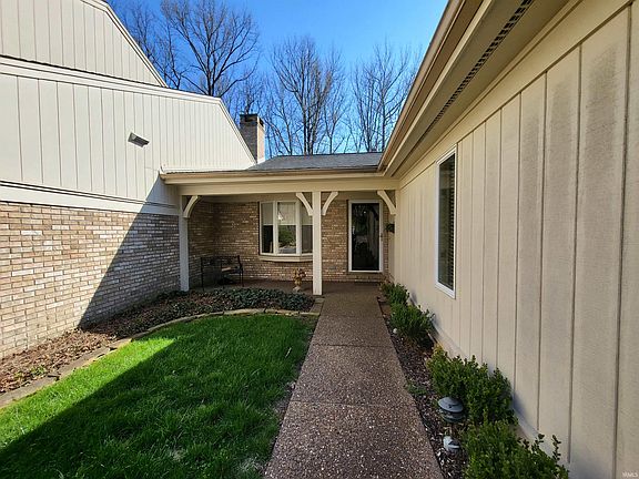 Nestled in the trees off Kratzville Road, this absolutely stunning condo has been loved and meticulously cared for, for over 25 years. This condo offers privacy and wonderful views of nature, while being just minutes away from shopping, dining, and entertainment. As you enter the foyer, you are immediately taken by the light and style of the interior. The eat in kitchen is spacious and is open through a large window to the vaulted ceiling and sky lights over the dining and living rooms. The living room has a ventless gas fireplace with a beautiful surround. The living room flows into a den with nice built in cabinetry and lots of windows looking out through the trees and opens onto a nice private patio. The master bedroom is very spacious with a walk in closet, an amazing fully appointed bathroom with jetted tub, walk in shower, and private toilet. There are two additional bedrooms, both nice sized with good closet space and another full bath. There are nice storage closets and a built in cabinet in the hall for additional storage. The garage has built in storage cabinets and attic storage. This condo is move in ready and neutrally decorated to fit any style. The HVAC was replaced in the Fall of 2022.