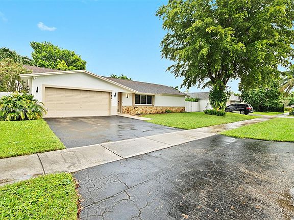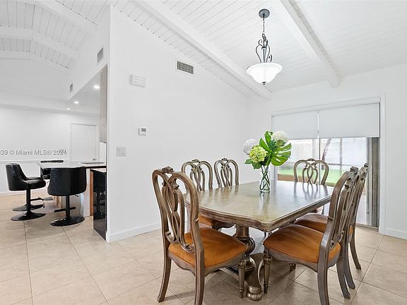 This spectacular 4-bed, 2-bath entertainer's dream home offers a bright, spacious layout with a split plan. The 4th. Bed. could be a Den. Theconverted garage serves as a versatile playroom, while the open island kitchen features maple wood cabinetry, granite countertops, & a built-in wine cooler, plus a window counter to the covered terrace—perfect for gatherings. Elegant touches include a formal dining room, vaulted ceilings, and all-tile floors. The stunning principal bathroom is a true retreat with a spa, shower, and double sinks on marble floors. Accordion shutters, a fenced yard with double gates, and a Jackfruit tree complete the outdoor space, which has ample room for a boat. Located within walking distance to A+ Calusa Elementary School in the desirable Calusa area. NO ASSOCIATION!