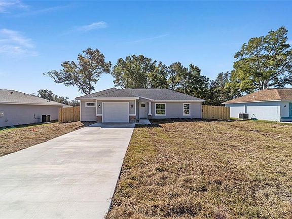 Under Construction. Bonus: Fully Fenced Backyard with wood Privacy Fence! This brand-new home is move-in ready and packed with custom-style features—without the custom home price! From the outside in, you’ll love the high-quality finishes: Hardie board siding, Stucco and stone accents on the exterior, and luxury vinyl flooring throughout the interior. The kitchen stands out with quartz countertops, soft-close cabinets, stainless steel appliances, and a spacious island with bar seating. There's also plenty of room for a full-sized dining table in the adjacent area. The primary suite is a true retreat, featuring an elegantly designed En-suite bathroom with dual sinks, a large tiled shower, and a spacious walk-in closet. Two additional bedrooms share a beautifully finished guest bathroom with a tub/shower combo. Situated on a cleared lot, this home is just minutes from the conveniences of West Ocala and even closer to the natural beauty of the Rainbow River and downtown Dunnellon. 2-10 Builder warranty will be provided.