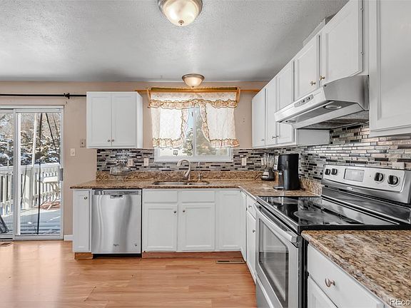 Welcome to 13483 Delphi Drive, a charming bi-level home in Littleton, CO! This residence seamlessly blends comfort and style, featuring five total bedrooms, with three of the bedrooms and a well-appointed bathroom on the upper level. The open living room connects effortlessly to the kitchen and dining area, creating a warm and inviting space filled with natural light. The chef's delight kitchen boasts granite countertops and modern appliances. Step onto the back deck for al fresco dining or relaxation. The lower level offers two additional bedrooms, another bathroom, and a bonus living area, perfect for a home office or media room. The property's well-maintained landscape creates a peaceful oasis, complemented by a solar panel system installed in 2022. Other highlights include a 5-year-old central A/C unit, a water heater installed in June 2023, and a new electrical panel installed in 2022. The home also has a water filtration system with Aqua Finance that can be assumed or cancelled if not of interest. Conveniently located just 5 minutes from Park Meadows Mall, this home offers a perfect Colorado lifestyle. Schedule a showing today and envision a life well-lived at 13483 Delphi Drive!