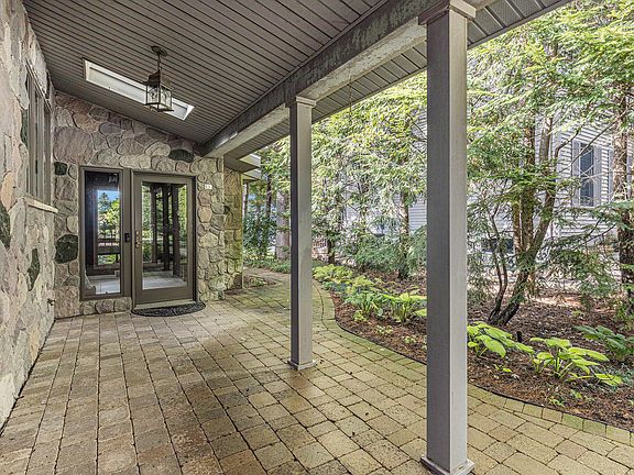 Field stone fireplaceFinished walk-outPrivate lake frontageUpdated corian countertopsKnotty pine cathedral ceilingTons of storageCeramic tile entry