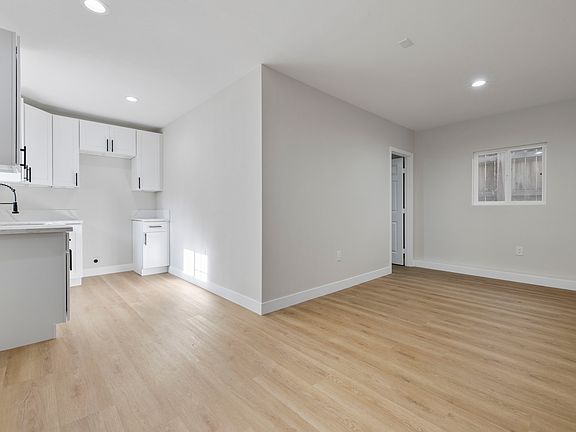 Step inside to a bright, open-concept living space featuring recessed lighting, fresh paint, and laminate flooring throughout. The kitchen includes stainless steel appliances, sleek cabinetry, and plenty of counter space for everyday cooking. The bedroom is comfortably sized with ample natural light, and the bathroom features updated finishes and a walk-in shower.