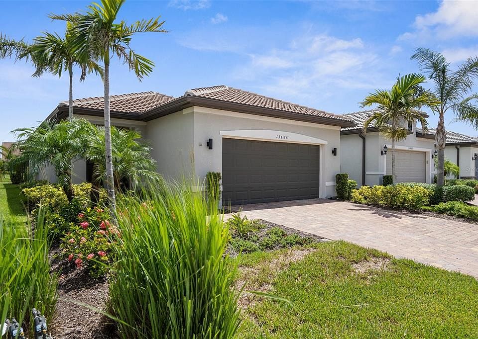 Furnishings have all been removed-easy to picture your own decor! WATER VIEW! Step into comfort and style in this beautifully designed 3-bedroom, 2-bath 1,575sf single family home with bright, open-concept living perfect for relaxing or entertaining. Move outdoors to your spacious covered lanai, positioned along one of IslandWalk’s scenic waterways—an ideal spot to savor breathtaking SUNRISES, dazzling SUNSETS, thrilling rocket launches, and festive fireworks, all from the comfort of home. This may be the only one in Islandwalk featuring the sleek clean lines of flat panel cabinetry, set apart with a modern flair. The Maple Latte soft neutral tones paired with QUARTZ COUNTERTOPS really give a chic look to the kitchen. What everyone loves about this home design is the kitchen! So much room for entertaining with that HUGE ISLAND as a focal point. Additional features include modern ceiling fans that draw the eye upward, accentuating the home's tall ceilings. With blinds on all windows, no need for the expense of purchasing window treatments. For ease of use, you will find hurricane accordion shutters on all windows and sliding door. Not found often - a WATER SOFTENER SYSTEM, gentle on clothes and appliances. FLEX ROOM with closet and french doors - ideal as a bedroom, office or den. You will have the luxury of extra space with a DEEPER GARAGE than found in most homes this size. Neutral tile flooring throughout with carpet in the primary and one guest bedroom(Seller offering credit for carpet condition in primary bedroom). Both bathrooms have coastal white cabinetry with the quartz countertop - same as kitchen. Islandwalk is renowned as one of VENICE'S largest and MOST DESIRED communities. With a full-time activity director, numerous events, clubs and activities, residents enjoy an active and social lifestyle. The community boasts 2 clubhouses, an event center, 2 resort-style pools, a lap pool, 12 pickleball courts, Har Tru tennis courts, dog park, playground, basketball court, miles of nature/biking trails. Venetian bridges and scenic water views complete this picturesque resort lifestyle. One of the great advantages of Islandwalk is that it doesn't require flood insurance and the entire community is maintenance-assisted. The Atlanta Braves Spring Training Stadium is just a short bike ride away, providing year-round events and activities for more than just sports enthusiasts. Another convenience is the completion of the new Downtown Wellen: Publix supermarket, restaurants, coffee places, shopping options, gas station and more! All of these amenities are just a short street-legal golf cart ride away. What are you waiting for? ENJOY the FLORIDA sunshine! Isn't it time to live the carefree lifestyle you’ve always dreamed of?