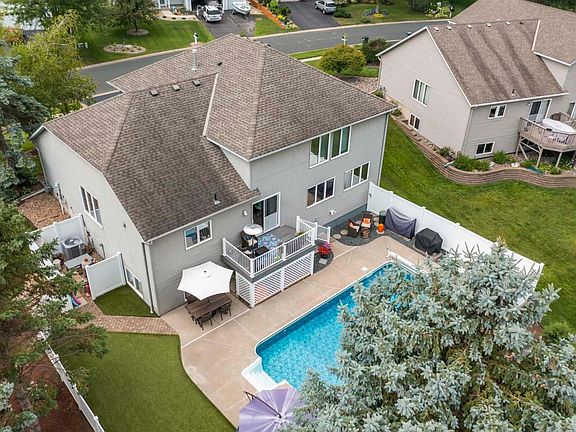 Executive Two-story in highly desired Rosemount location! You will enjoy the sunny days in your very own inground pool w/privacy fence all around, & "Forever Lawn" turf is pet friendly w/drainage holes that is easy to maintain & green all year round. Beautiful corner lot w/professional landscaping. This 5 BR home has 3 BR's on one level, one on the main level & a 5th BR in the LL. If you work from home there are multiple options for you. Spacious kitchen w/lots of cabinet & countertop space & high end Stainless steel appliances. You'll love the nice pond view from your new maintenance free deck w/stairs to the back yard, pool, patio & storage shed. The primary suite has a private full bath w/separate tub & shower & walk-in closet. Lower level has a huge family room, 5th BR, another full bath, & extra storage. The 3 car garage is heated, insulated, room for extra storage. Great location! close to parks, walking & biking trails, shopping, restaurants, & award winning ISD 196 schools.