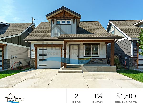 Craftsman-Style Home in Coeur d'Alene with 2 Bedrooms, 1.5 Bathrooms! Welcome to this well-maintained home built in 2021, located in a desirable neighborhood in Coeur d'Alene. Offering 972 square feet of comfortable living space, this two-bedroom, one-and-a-half-bath home combines functionality and charm in a thoughtfully designed layout. The inviting covered front porch is perfect for enjoying your morning coffee or relaxing in the evening. Inside, you'll find an open-concept living, dining, and kitchen area with large windows that let in plenty of natural light. The main level features durable luxury vinyl plank flooring for easy maintenance and a modern look. The kitchen is equipped with stainless steel appliances, including a stove, built-in microwave, double-door refrigerator, and dishwasher. Granite countertops and a breakfast bar that seats up to three add convenience and style, while the knotty alder cabinetry and dark bronze fixtures bring warmth to the space. Also on the main floor is a half bath, a laundry room with washer/dryer hookups, and additional storage space. A back door leads out to a private, fenced yard ideal for outdoor enjoyment. Upstairs, you'll find two cozy bedrooms and a full bathroom. Both bedrooms are carpeted and feature sliding double-door closets for ample storage. Additional features include a one-car garage, sprinkler system, central air conditioning, and an efficient forced air heating system. Best of all no HOA fees! No smoking. Application Fee: $40.00 Security Deposit: $2,000.00 Flat Rate Fee: $85.00 No Pets No Smoking. No Pets.
