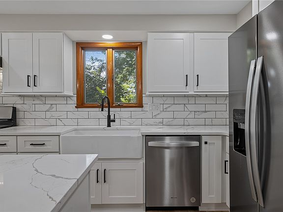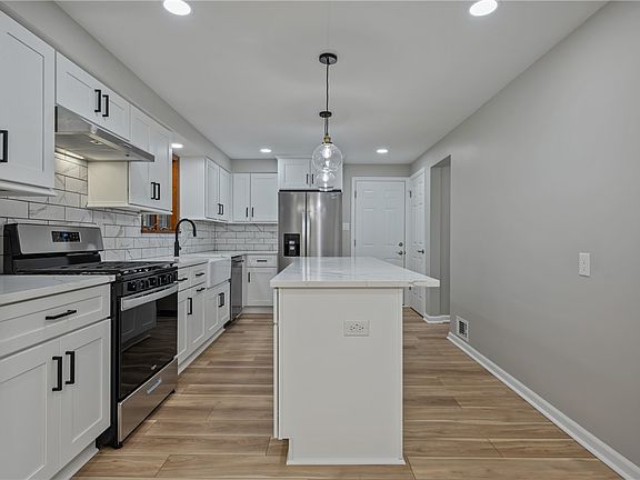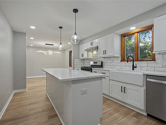 This beautifully remodeled home shines from top to bottom! The stunning kitchen is a chef’s dream, featuring brand-new SS appliances, elegant QTZ countertops, stylish white cabinets & an oversized tile backsplash. Farmhouse sink, black hardware & updated light fixture add both charm & practicality. Brand-new LVP flooring flows seamlessly T/O 1st Flr, both beautiful & durable. Spacious DR, highlighted by striking light fixture, is perfect for hosting. Large windows flood LR w/natural light, creating bright & inviting space. Convenient half bath is located on the main level. Upstairs, the Master boasts a beautifully tiled en-suite bath. Brand new carpet runs T/O upper level. 3 add'l generously sized BD have ample closet space, & 2nd remodeled bath completes upstairs. Fin basement has a cozy GR w/ LVP flooring & charming LB FP. The fully fenced-in yard is ideal for kids/pets to play safely. Cook School Park just down the street. Easy access to downtown, restaurants, shopping & much more!