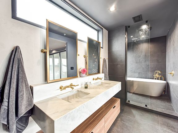 Luxury Bathrooms: Three full baths, including a serene primary suite with a huge soaking tub and designer finishes.