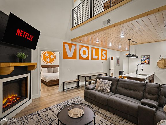 Impressive 4-bedroom, 5-bathroom fully turnkey cabin featuring a private indoor pool, located in the sought-after Lodges at Remont subdivision. This cabin showcases a University of Tennessee-inspired design, offering a fun, game-day-ready atmosphere that resonates with Smoky Mountain visitors and Vols fans alike.