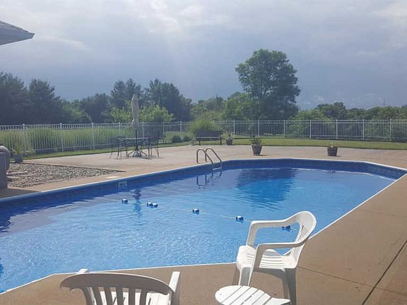Exquisite 3 bedroom 3 Full Bath custom built ranch on 10.4acres*2 car oversized garage plus separate garage for 2 plus cars*Hardwood Floors* Ceramic Tile* Gourmet Kitchen*All bedrooms have walk in closets* Basement has walkout* Cath. Ceilings* First floor Laundry* Walk in pantry in kitchen*Indoor custom lighting*Walk out basement*Built in book shelves* Beautiful Setting*In ground Pool.