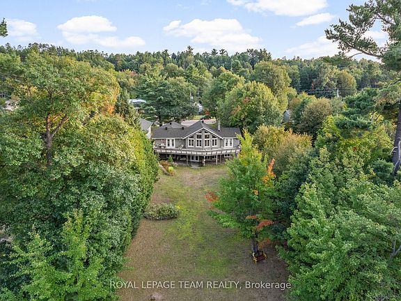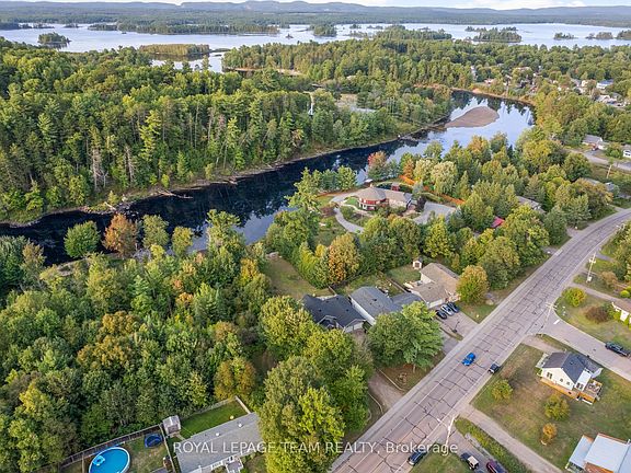 Custom stone waterfront bungalow with 4 bedrooms, 3 bathrooms, on a private half acre along the Petawawa River. Surrounded by mature trees including your own Macintosh apple tree this home offers exceptional privacy with no rear neighbours and a backyard that opens directly to a peaceful forest. The curb appeal is unmatched with its exquisite stone masonry exterior, extra-long driveway, double garage, and a brand-new roof (July 2025). Inside, an oversized foyer introduces 8 ft ceilings throughout the main level, leading into a sun-filled living room with 14 ft vaulted ceilings and a dramatic wall of windows that bring the outdoors in, framing peaceful views of the river and private backyard. The open kitchen and dining area flow directly to an oversized deck spanning the entire back of the home, perfect for entertaining by the water. A main floor laundry room adds everyday convenience.The primary suite includes an ensuite, walk-in closet, and glass doors opening to the patio. The fully finished walkout basement adds two more bedrooms, a large family room, and a newly renovated bathroom. Life here extends beyond the home. Spend weekends at Petawawa Point Beach and boat launch (steps away), explore local trails and parks, and enjoy the convenience of nearby amenities, restaurants, Garrison Petawawa , and Valour JK12.