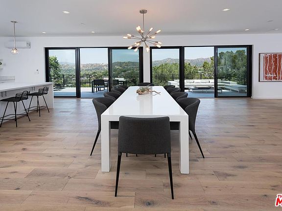 Situated on a quiet hillside in Eagle Rock is this gorgeous 2017 built modern home with stunning views. When you enter the front door, you are greeted with a wide-open floor plan that soaks in the fantastic mountain and Eagle Rock views. The living, dinning and kitchen are one large loft like space with 9 and a half foot ceilings and mountain views that go on for miles. The expansive deck allows easy indoor/outdoor dining and lounging. This subtle modern home is outfitted with solid French oak floors, Carrera marble, expansive glass doors, stainless steel appliances/hardware, Custom wood/glass doors, custom cabinetry in the kitchen and bathrooms. With over 1500 sq. ft. of outdoor deck space this is an entertainers dream. Downstairs are the 3 bedrooms with a Master bedroom that has mountain views and a large oak tree off the deck, a large walk in closet, and a master bath with a gorgeous 2-person blonde stained concrete shower. Built by one of LA's true hillside specialists. A must see!