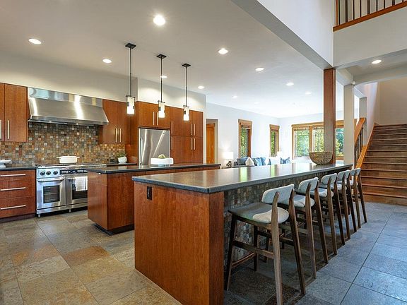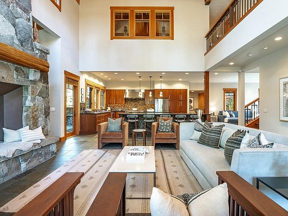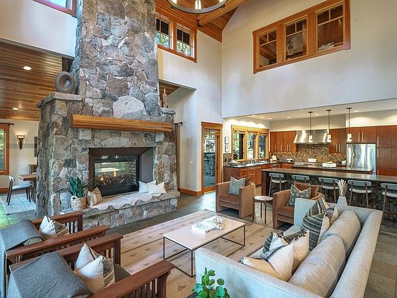 Quietly set along Fairway Drive, one of Old Greenwood's most desirable addresses, this residence is a rare find in the heart of the community. Beloved for its peaceful atmosphere and welcoming sense of neighborhood, Fairway Drive also places you just a short stroll from the Pavilion--the clubhouse that defines Old Greenwood living. While there may be larger or more opulent facilities elsewhere, none rival the Pavilion's sun-filled setting and vibrant, year-round energy. Thoughtfully positioned on its homesite, the home is angled to maximize privacy and outlook, resulting in spaces that feel both expansive and inviting. A soaring great room makes a striking first impression, anchored by a dramatic double-sided fireplace shared with the family room. Traditional architecture is complemented by a contemporary open flow, with a chef's kitchen at the center, featuring a generous bar that easily seats seven. The main level offers a primary suite with a luxurious bath, while upstairs reveals a second master suite, two additional en-suite guest rooms, a warm office with fireplace, a children's recreation room, and a loft. Every room is designed with comfort and gathering in mind, creating a home that welcomes both intimate family living and larger gatherings with ease. Outdoors, the surprises continue: sliding doors from the living and recreation rooms open onto a wide, beautifully appointed terrace with built-in seating, a hot tub, and a fire pit--perfectly sited for both privacy and connection to nature. Blending elegance, comfort, and thoughtful design, this Fairway Drive retreat captures the essence of mountain living in Old Greenwood.