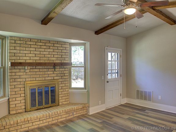 Charming, updated home in Glenpool! 3 bedrooms, 2 full bathrooms, 2 car garage fully remodeled. Fresh interior paint throughout, new vinyl floors, new light fixtures and windows. Vaulted living room with beamed ceiling and brick fireplace. Kitchen features stainless appliances, granite countertops. Both bathrooms have been fully remodeled. New roof and gutters. Great location near shopping, dining and entertainment in Glenpool and Tulsa Hills. Close to highway. Glenpool Schools.