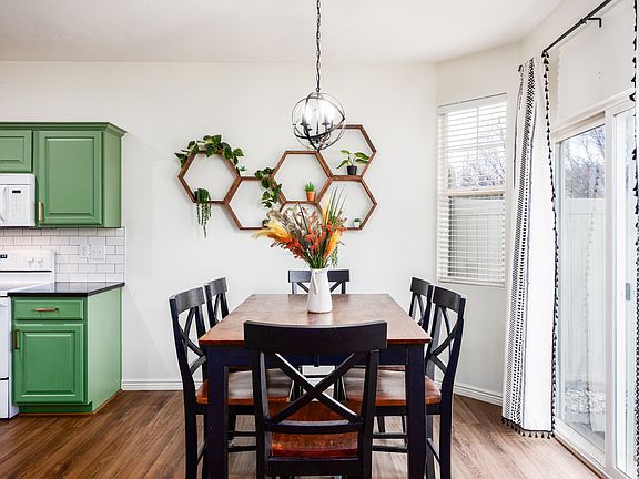 Beautifully updated and well-kept end unit townhome featuring granite countertops, LVP flooring, a new 2025 water heater, and included fridge. Master suite offers his-and-hers walk-in closets and a private bath. Enjoy a fenced patio and garage with hanging shelves. Google Fiber available. HOA includes a clubhouse with a gym and pool, snow removal, water, trash, and exterior insurance. Perfect move-in ready home!