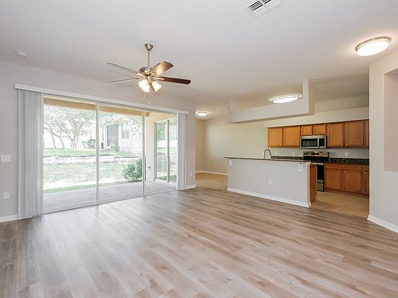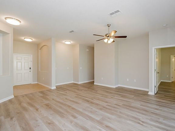 Don't miss out on this renovated Spring Hill rental home with four bedrooms, two bathrooms, and an adjoining, three-car garage. The open floor plan of this smart home begins in the living room, where a suspended ceiling fan promotes comfort. Use the living room's sliding doors to reach the backyard's covered patio. A modern chandelier brightens the dining room. In the kitchen, stone-look countertops provide ample space for meal preparation. The kitchen's breakfast nook offers a spot for quick meals. Hard-surface flooring and neutral paint create a calming atmosphere in the main bedroom. Start your day in the private bathroom's walk-in shower or at its twin-sink vanity. A garden tub completes the en suite bathroom. Tour this rental home today.