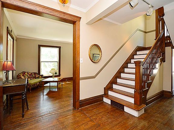 GREAT NEW PRICE!! This Beautiful Historical Home was built in 1896 and offers 3 levels of living space and every modern convenience. From the moment you step on the covered Porch, you will know you're home. Inside the Foyer invites you in with gorgeous hardwood floors that flow throughout the entire Home from the spacious Living Room..into the Dining Room & continuing into Gourmet Eat-In Kitchen with its granite counters, stainless steel appliances, cherry cabinets & center island. Also on the main floor is the bright & open Den, with access to the Deck, a convenient Office, Powder Bath, Pantry & Mud Room. Upstairs you'll find 4 spacious Bedrooms & 2 full Bathrooms along with Walk-In Closets & another Home Office. The top floor offers a 5th Bedroom & 2 huge Storage Areas. The unfinished, walk-out Basement provides plenty of additional Storage & a Laundry Area. Enjoy relaxing on the Deck overlooking the expansive Tree-Lined Backyard, Patio & the detached 2 Car Garage. Walk to Town, Schools, & Train