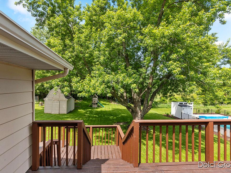 Discover your dream home on the Northwest side, just 7 minutes from both Downtown Grand Rapids and Millennium Park. This stunning ranch offers over 3,400 sqft of living space, featuring two spacious living rooms on the main level. Enjoy the modern comfort of updated bathrooms, fresh paint, and newer flooring throughout. The kitchen boasts a pantry closet. Main bedroom with large walk in closet, bathroom with dual sinks and a luxurious tile shower. The recently remodeled walkout basement includes a wet bar and a unique bookcase that opens into a second recreational area. Dining room with slider to a two-tier deck and cement patio. Storage shed for that extra storage. Large backyard that backs up to Versluis Orchards. This is a must see. Offers Due Tuesday 6/4 at 11am