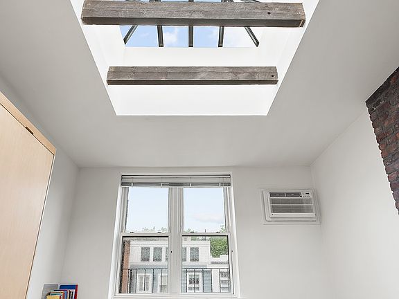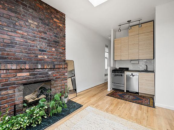 A Sunlit Studio Oasis in Cobble Hill Perched on the top floor of a charming brownstone, this sun-filled studio feels like your very own urban oasis retreat amongst the treetops. Nestled on a leafy, picturesque block in the heart of Cobble Hill, the home features a dramatic oversized skylight that floods the space with natural light, a cozy working wood-burning fireplace framed by exposed brick, and a recently updated kitchen complete with marble countertops, stainless steel appliances, and a dishwasher. Set within a well-maintained boutique co-op, residents also enjoy access to convenient amenities including laundry facilities. Just moments away from Brooklyn Bridge Park and the vibrant shops, caf s, and restaurants that make this neighborhood so beloved, you'll also enjoy easy access to multiple subway lines: A, C, F, G, R, 2, 3, 4, and 5-making your daily commute a breeze. Please note: cats are welcome, but no dogs allowed