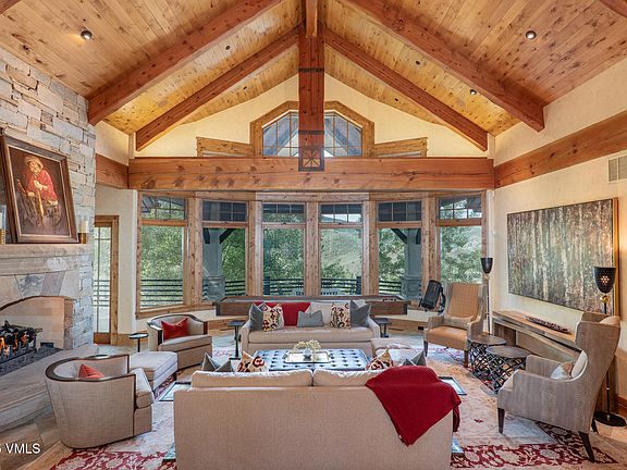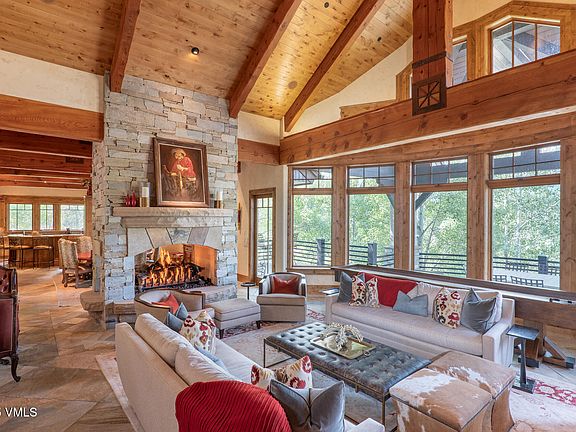 Nestled on a sprawling 6-acre estate in the exclusive Cordillera Divide, this luxurious mountain retreat seamlessly blends grandeur and serenity. From the moment you enter, soaring vaulted ceilings framed with rich wood beams and a warm three-way fireplace create a welcoming sense of mountain elegance. The home offers two master suites with private porches and en suite bathrooms in every bedroom. Multiple gathering spaces, including three separate living areas, and a spacious dining room. Outdoors, sweeping decks, lush landscaping, and captivating water features set the stage for both peaceful solitude and vibrant entertaining. A fire pit, hot tub, bocce ball court, and family-friendly patios invite year-round enjoyment. The lower level is a true entertainment hub, featuring 4 bedroom suites, a dramatic 1,100-bottle wine room, a media room, a sauna, and wet bars—ideal for everything from quiet evenings to lively celebrations. As part of the Cordillera community, residents also enjoy access to premier amenities, including golf courses, fitness centers, pools, tennis and pickleball courts, fishing ponds, and miles of scenic hiking and biking trails.