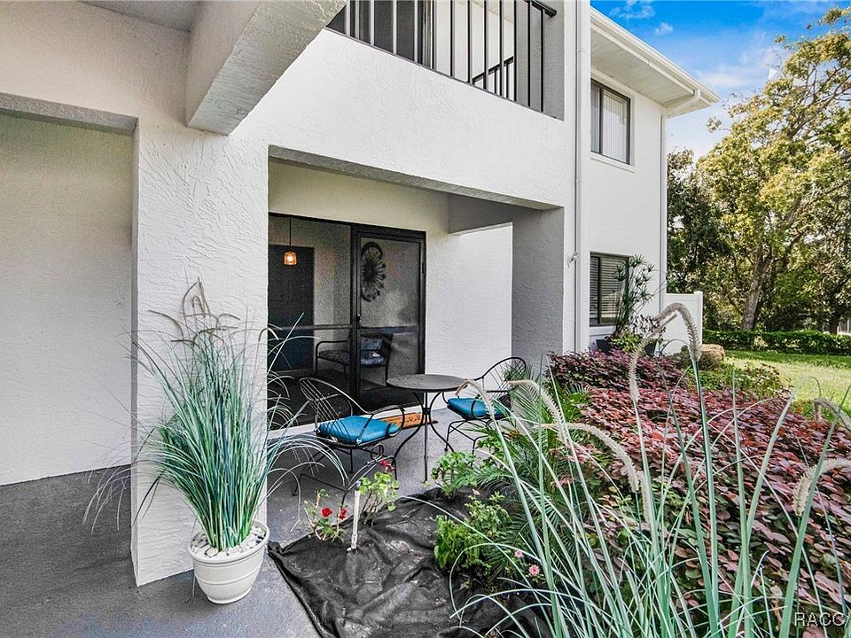 Main level, end unit, 2/2 condo with beautiful golf course natural view in the Sugarmill Woods subdivision. The kitchen and both bathrooms were completely renovated in 2023. The roof is 2022, Central Air Heat Pump is 2021 and Hot Water Heater is 2021. A majority of the windows have newer double pane windows. All you have to do is move in and relax! The 24 x 8 lanai is not included in the heated square footage but allows an additional space. There are plenty of closets for storage and there is one on the covered screened porch entryway. Need more storage? There is one storage closet assigned to the unit within walking distance. There is a covered parking spot and plenty of guest parking for when you have company. PETS Allowed! This well maintained, updated condo gives you peace of mind and is in close proximity to Tampa / St. Pete Airports, Restaurants, Shopping, Medical and all the Nature Coast has to offer!