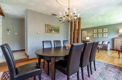 Meticulously maintained 4 bedroom Ranch on private lot near town and potential new West Elementary School district. This home offers 1 level living and features an updated eat-in-kitchen with new tile flooring, quartz countertops, painted cabinetry with new pulls plus white washed brick. The fireplace family room includes hardwood floor and deck access. Both the living & dining rooms feature hardwood floors and lots of natural lighting. The bedroom wing offers 3 nicely sized bedrooms with ample closet space and full bath. The lower level is finished and includes mudroom with new flooring, a spacious play room with wall to wall carpeting, 4th bedroom (guest bedroom) plus well maintained utilities. Additional features include new roof (2020), newer A/C compressors (2014), updated half bath & laundry with new tile flooring. Circular drive, central A/C, 2 car garage and an oversized deck overlooking scenic backyard with wonderful setting makes this an excellent buying opportunity!