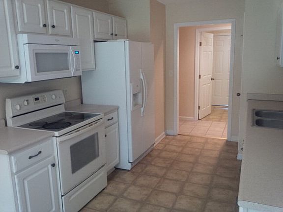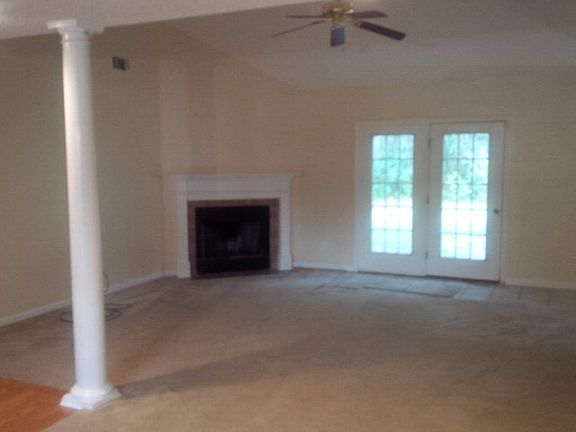 Large home with spacious rooms, 4 BR 2 bath, living room, dining room, gas fireplace separate laundry room. Split floor plan with master suite. Large kitchen with breakfast area and pantry and two car garage has a private back yard with wooded view. Quiet community with street lights and side walks, close to schools.