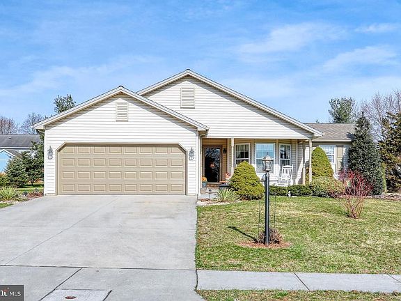 Enjoy one floor living in this ranch style home with a sweet covered front porch perfect for a set of rocking chairs. This home has been meticulously cared for with a neutral palette just waiting for you to make it your own. You will love the kitchen with lots of cabinet space and counter tops as well as a huge pantry and an appliance garage in each corner. The dining room is bright with an angle bay window and plantation shutters. Have your coffee or tea in the sunroom with an abundance of sunshine. The owner's suite is spacious with a private bath. The lower level is ready for you to finish.The yard offers mature landscaping and a garden shed. This home also has been emery wrapped during construction for energy efficiency. Just move in!