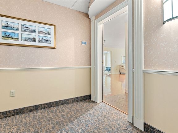 RARELY AVAILABLE! 55+ 2nd floor with elevator. 2 bed/2bath end corner unit that is light and bright with custom blinds and hardwood in main living area. Spacious main bed and full bath with walk in custom closet. Custom built-in twin murphy beds in second bedroom. Kitchen has hardwood floors and tons of cabinet space. Many amenities including gym, library, theater, and deeded parking. All this is within 1 mile of the gorgeous ocean with public beach.