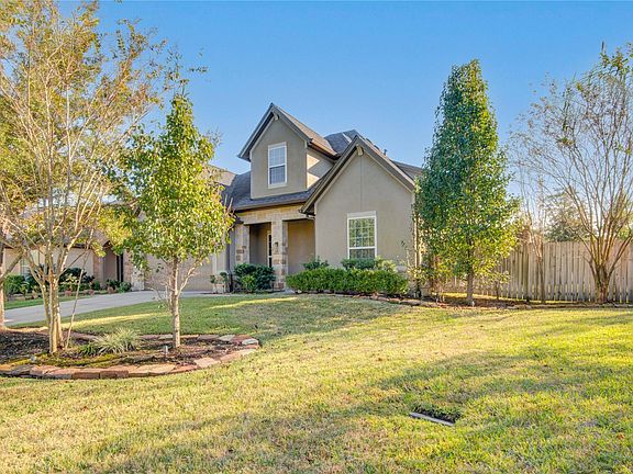 Discover exceptional custom residence in the sought-after Shenandoah community. Designed with inviting layout dramatic floor-to-ceiling stone fireplace, rich hardwood flooring throughout the main living spaces, elegant family room highlighted by coffered ceilings. Impressive kitchen perfectly positioned to take in beautiful views of the backyard and features gas cooktop, quartz countertops, custom wine bar topped, expansive island, oversized walk-in pantry. Peaceful primary suite includes striking wood-accent ceiling, spa-inspired bath offers dual vanities, deep soaking tub, generous shower. Main level secondary bedroom with its own full bath, dedicated office, extra-large utility/mud room. Upstairs, a spacious third bedroom, another full bath, and a game room, convenient access to a Texas-style walk-in attic for additional storage. Triple sliding glass doors open to an extended covered patio with a pergola, creating seamless indoor-outdoor living and overlooking a large, private yard.