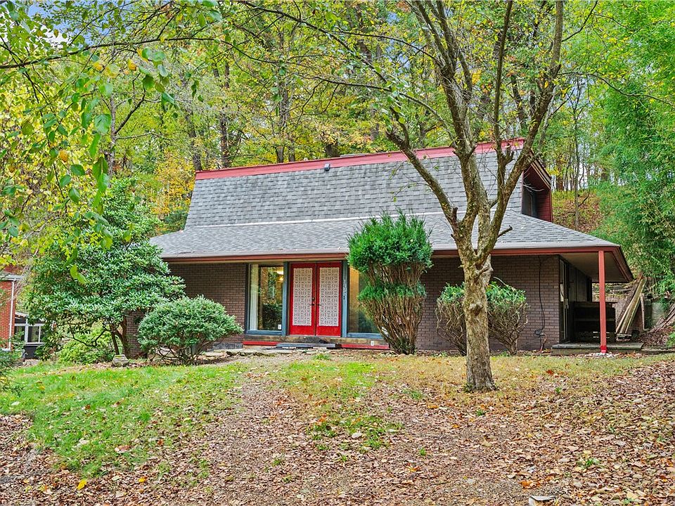 Experience serenity at this beautifully maintained Japanese Tea House–inspired home in Bradford Estates. Featuring 3 bedrooms and 2 full baths, this light-filled residence offers floor-to-ceiling windows, bamboo floors, and an open-concept layout with flexible living and dining spaces. A first-floor bedroom and full bath provide convenient main-level living or a private guest suite. Upstairs, the primary bedroom impresses with expansive cedar closets and a modern design, complemented by new carpet throughout. Surrounded by mature trees, this home perfectly blends peaceful living with a prime location close to shops, dining, and major routes.