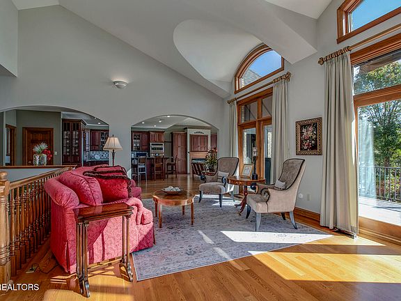 WATERFRONT with SPECTACULAR LAKE and MOUNTAIN VIEWS from almost every room. Enjoy morning coffee relaxing on the spacious deck overlooking the lake or hosting a gathering of friends as you take in the impressive views of the incredible tiered landscaping and a stone walkway leading to your PRIVATE DOCK on the main channel of Tellico Lake. This custom home will not disappoint from the open floor plan with high architectural ceiling in the living room, gold-leaf trey ceiling in the dining room, and a hearth room adjacent to the kitchen. The chef's kitchen is a show-stopper with plenty of room for entertaining and includes a Sub Zero panel refrigerator, custom Mouser cabinets, new GE Advantium CAFE French door oven and microwave, large walk-in pantry, and two sinks. Relax in the spacious Primary Bedroom overlooking the lake that boasts a cozy fireplace, trey ceiling, walk-in closet and large ensuite bath. An office/5th bedroom with an adjoining full bath round out the main level. The lower level has a full kitchen, living area with stone fireplace, and dining/game area. In addition there are two spacious guest bedrooms with jack-and-jill bath, a home gym, and garage space with a workshop. Fiber Optics is available through the local phone company (TDS) for fast internet service. Twenty-two updates have been made so ask the agent for a copy of the list. Just a few of the updates include: new high-end appliances, humidifier, HVAC, hardwood flooring, front door, landscaping and irrigation updates, shingles, and Trex decking. Country Club membership is OPTIONAL.