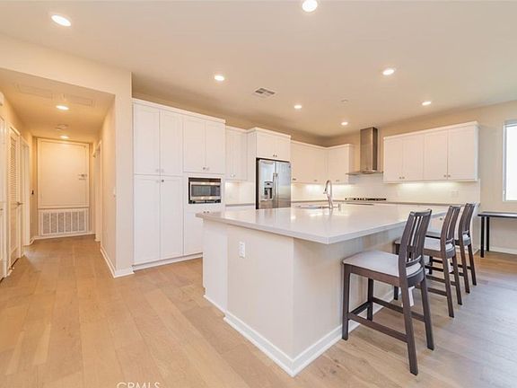 Experience contemporary elegance in this top-floor, exceptionally spacious 2-bedroom, 2-bath condominium situated in the vibrant heart of Irvine's financial district. The open floor plan features a generous family great room that extends to a large private balcony, providing picturesque views of the lush courtyard. The gourmet kitchen boasts a sizable quartz-topped island, upscale stainless steel appliances, and ample cabinetry for all your storage needs. A conveniently located laundry closet includes a washer and dryer. The unit showcases designer-selected laminated wood flooring in the living areas and upgraded carpeting in the bedrooms. Both the master and secondary bedrooms offer their own en-suite bathrooms for added convenience. The property includes a private tandem two-car garage on the first level, equipped with an EV charging outlet to accommodate electric vehicles. Residents of Central Park West enjoy resort-style amenities such as a clubhouse, state-of-the-art fitness center, outdoor spa, yoga studio, pools, as well as outdoor sports parks, playgrounds, and pickleball courts. The location provides exceptional connectivity, with easy access to I-405 and proximity to premier shopping and entertainment destinations including Newport Beach's Fashion Island, Irvine Spectrum, South Coast Plaza, and Laguna Beach.