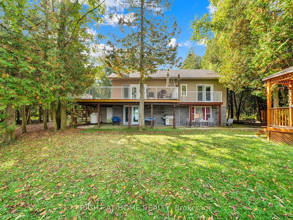 Francis Lake Waterfront Home or Cottage The Perfect Escape Awaits!Enjoy lakeside living at its best in this 3-bedroom, 2-bathroom home or cottage, ideally situated between Wiarton and Owen Sound. Nestled on beautiful Francis Lake, a family-friendly inland lake with a gradual sandy shoreline, this property is perfect for swimming, boating, and fishing. Spend your days on the dock, your evenings around the fire pit, and your nights stargazing under clear skies.Offering over 2,100 sq. ft. of finished living space across two levels, this home is designed for comfort and entertaining. The open-concept main floor features a spacious living, dining, and kitchen area with water views, hardwood floors, and a cozy propane fireplace. The kitchen boasts ample cabinetry, tile flooring, and stainless steel appliances. The primary suite provides stunning lake views, walkout access to the wraparound deck, and a walk-in closet. A 3-piece bath and large laundry room with abundant storage complete this level.The walkout lower level is ideal for family and guests, featuring a large family room, two additional bedrooms, and a newly renovated 3-piece bath. Outside, enjoy multiple spaces to relax including the hot tub, gazebo, lower-level patio, and expansive upper deck that extends your living space outdoors.Practical upgrades include generator wiring (generator included) for peace of mind. The impressive 32 x 26 detached double garage features 12 ceilings, two oversized doors, and a second-level loft accessible by hoist-ideal as a workshop, storage, or creative space. Additional outbuildings include a 14 x 24 garage and lean-to carport, perfect for RV, boat or toy storage.Stylish, functional, and filled with opportunities for relaxation and recreation, this Francis Lake property is more than a home ,its a lifestyle.